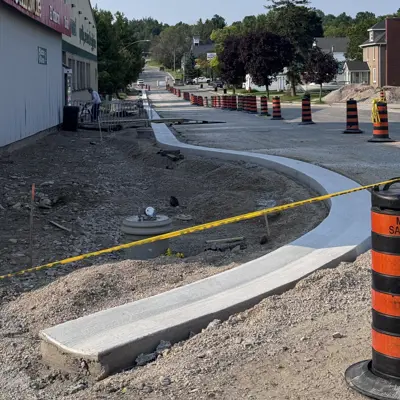 Last week, crews successfully completed the installation of the new curb along the entire east side of Meredith Street. This is a major milestone, as the curb helps shape how our beautiful new downtown will look and marks the beginning of rebuilding our hardscapes.