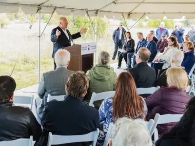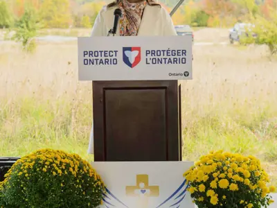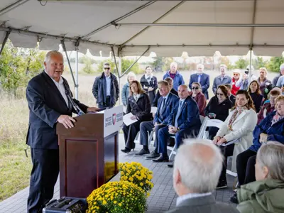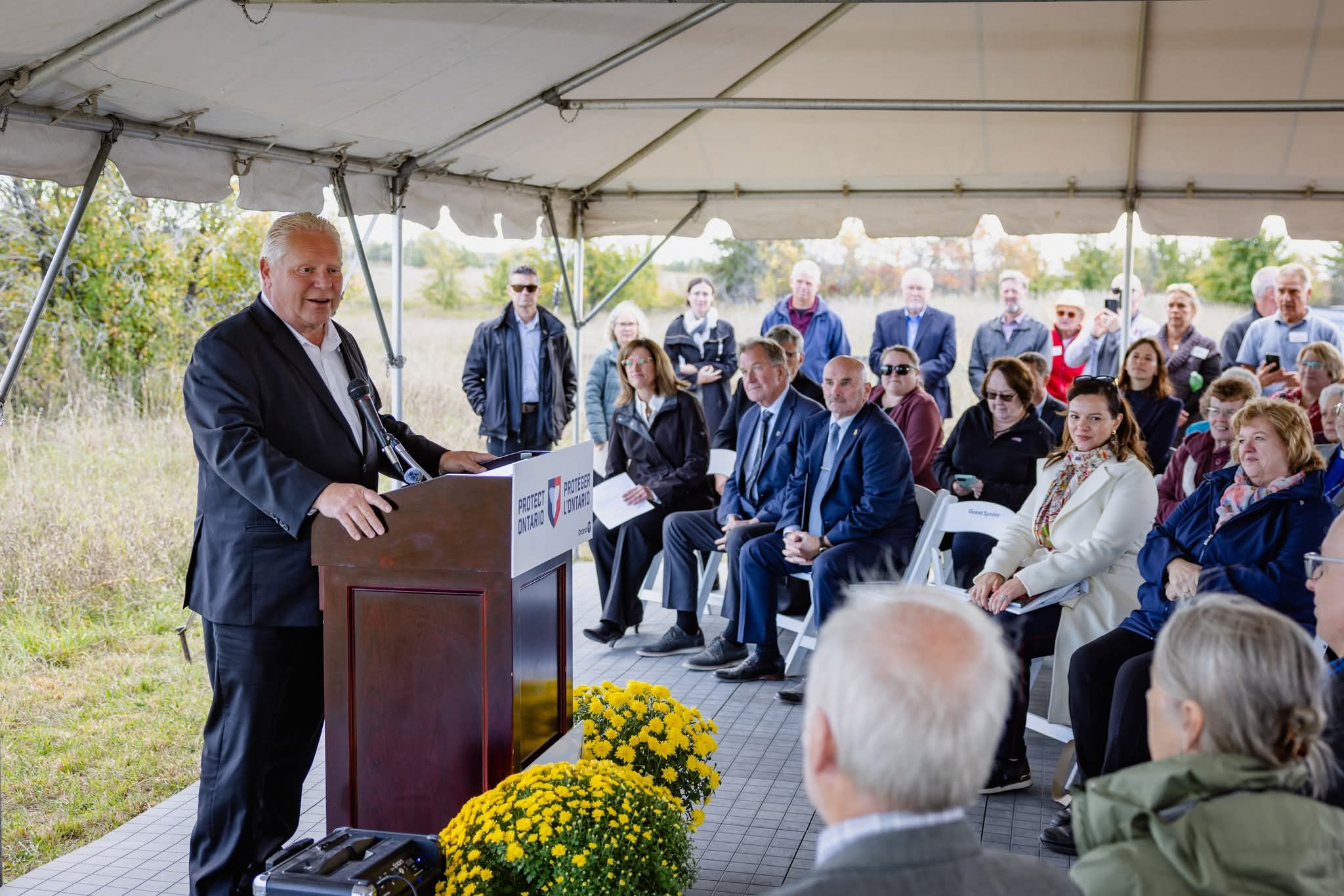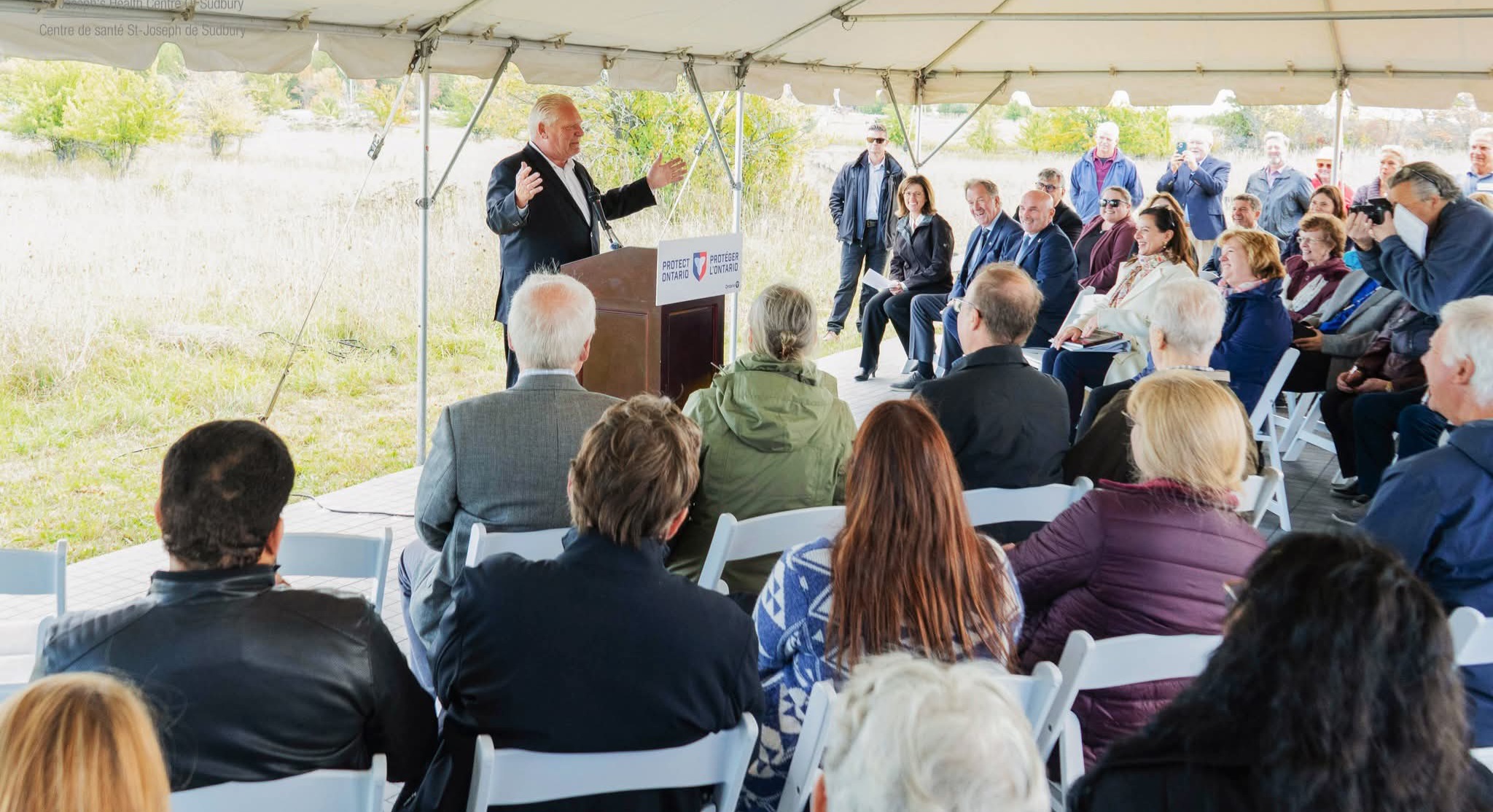 It was a gorgeous day October 9th in Gore Bay as the community proudly welcomed Premier Doug Ford, Minister Natalia Kusendova-Bashta, Minister George Pirie, and local MPP Bill Rosenberg to the future site of St. Joseph’s Lodge — a brand-new 64-bed long-term care home that will serve the residents of Western Manitoulin.