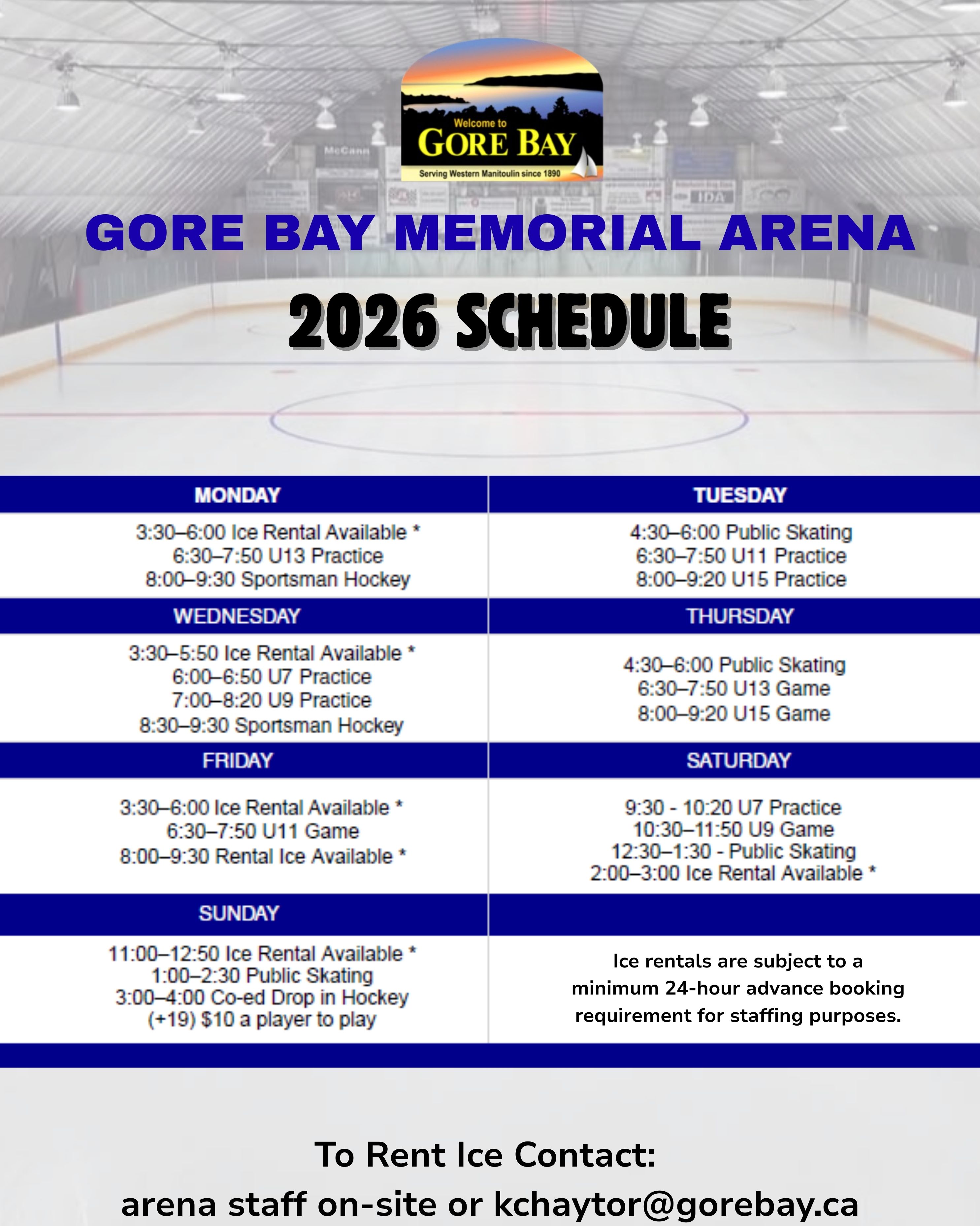 | Minor Hockey | $85.00/hour (incl. HST) |